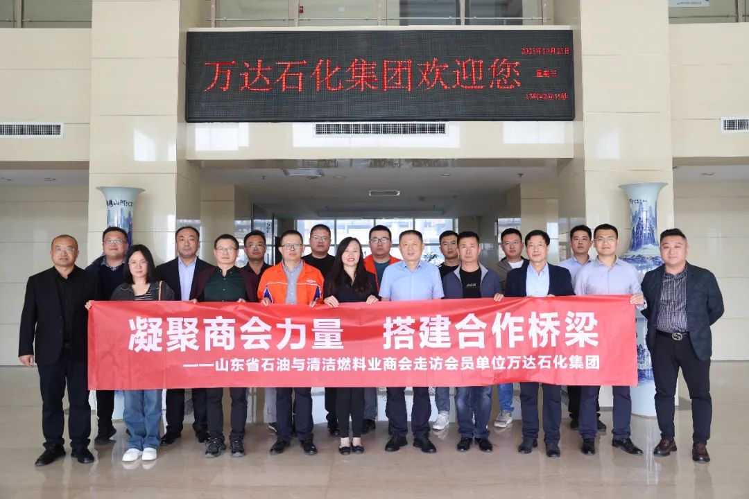 10月25日,山东省石油与清洁燃料业商会考察团在秘书长赵玮的带领下前来万达石化集团洽谈交流。万达石化集团营销公司董事长苟增彬、总经理刘学强等公司领导陪同。