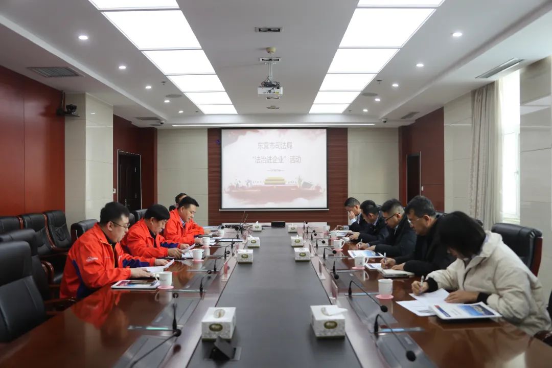 12月21日下午,东营市司法局党组成员、副局长靳世国一行前来万达石化集团开展“法治进企业”活动,万达集团副总裁、万达石化集团执行总裁尚吉国,万达集团总裁助理、cq9跳高高公司董事长王敏等公司领导参加活动。