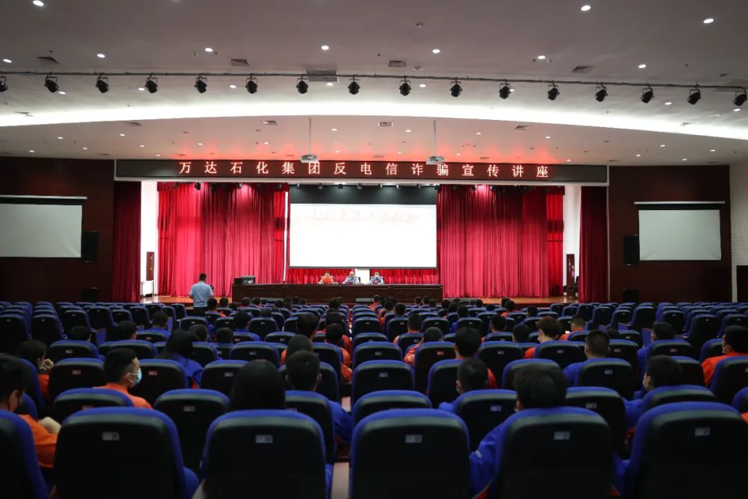 为切实提高广大干部员工识别各类诈骗手段的能力,增强防诈意识,普及防诈技巧,6月2日,万达石化集团特邀临港产业园治安办公室主任李福鑫、副主任秦伟为干部员工开展反电信诈骗宣传讲座。讲座由万达石化集团副总经理、综合管理事业部总监单博主持。