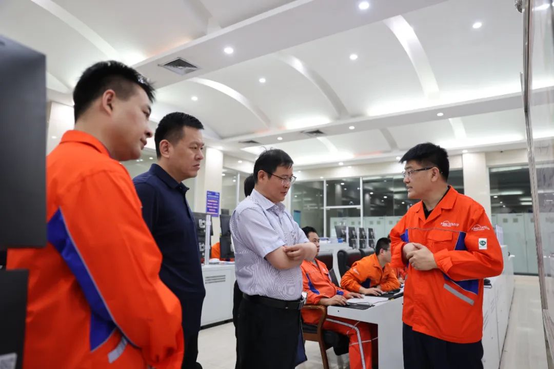 吴书兵一行实地参观了万达石化生产基地,了解了公司生产运营、项目规划、税费缴纳和税收政策需求等情况,随后在六楼会议室举行座谈。